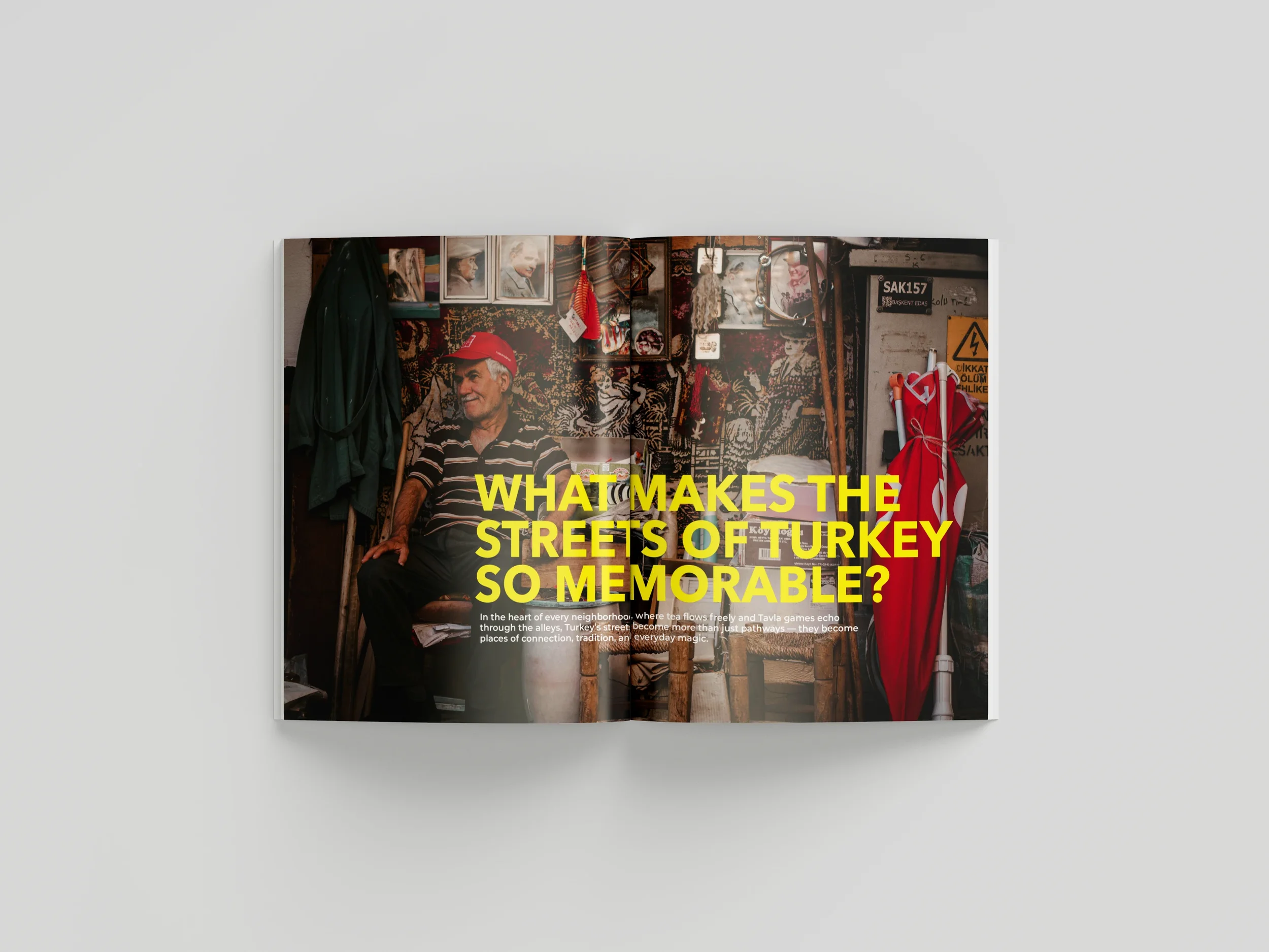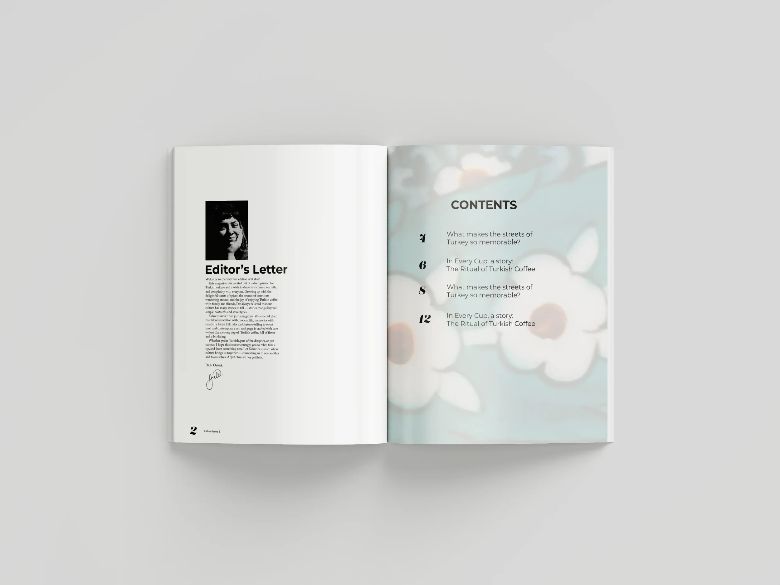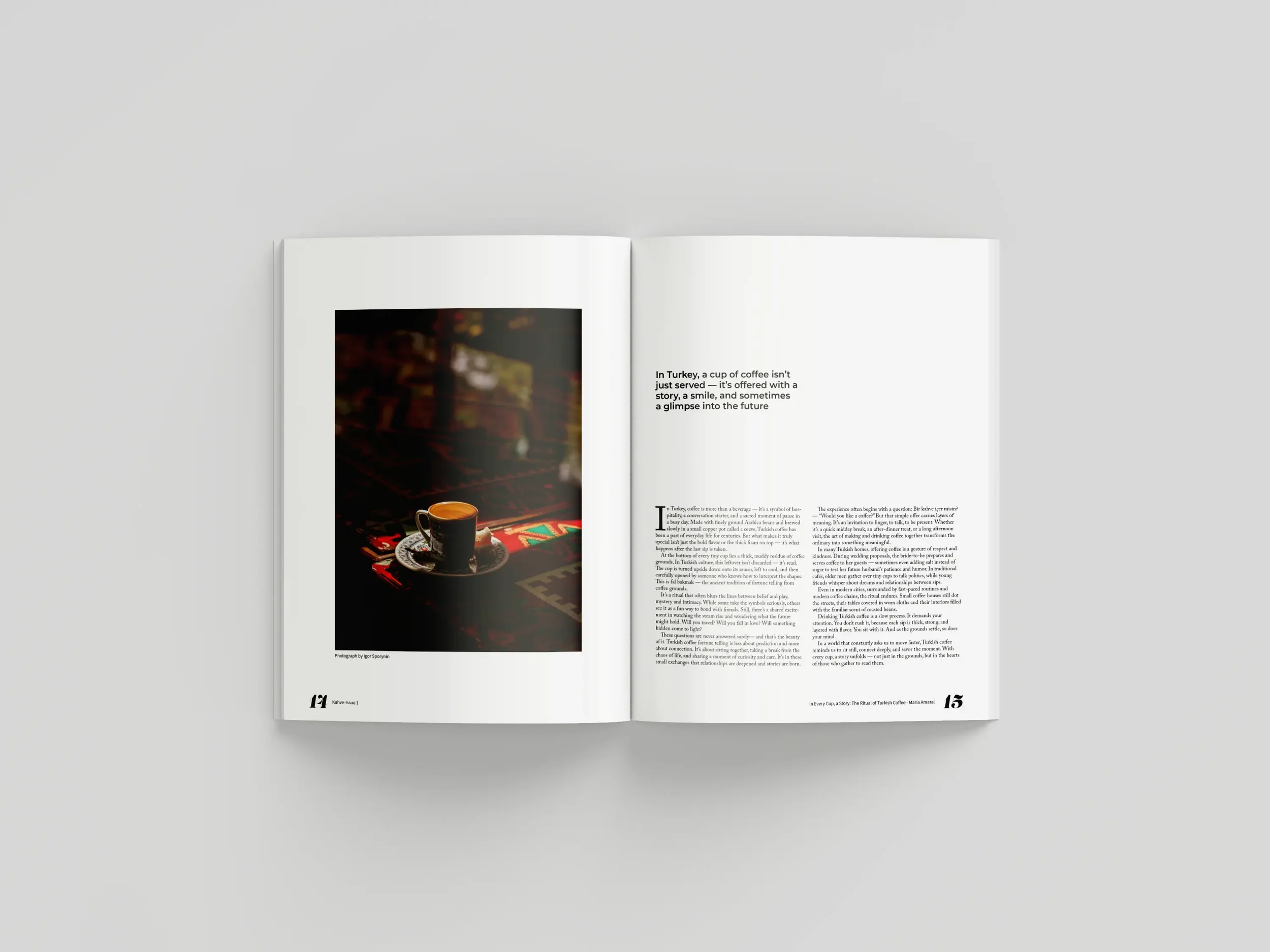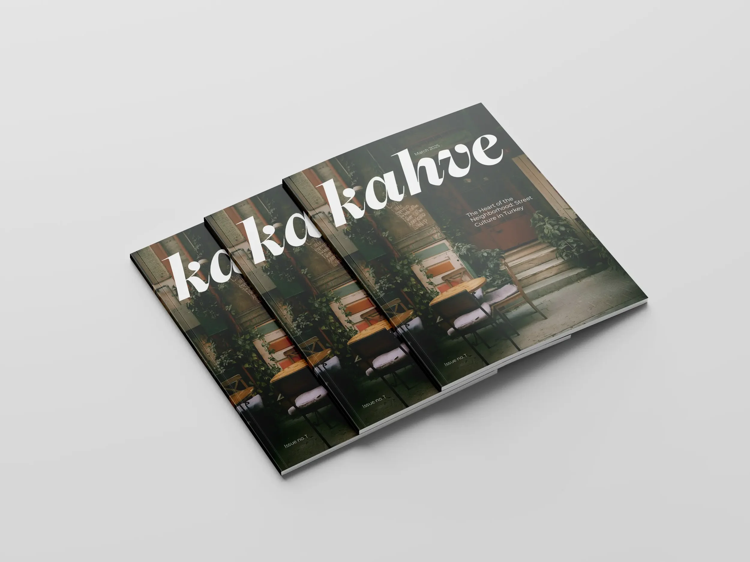 Kahve is a magazine concept that celebrates Turkish art and culture through a modern and minimal design approach. The goal was to highlight tradition in a contemporary way, combining clean layouts, bold typography, and warm earthy tones inspired by Turkish coffee. The design focuses on simplicity, balance, and strong visual storytelling. Photography and layout work together to create a timeless feel.